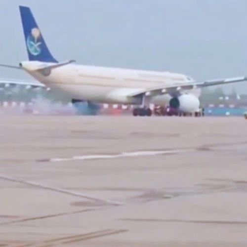 Flight Departs from Jeddah, Lands Amid Sparks and Smoke